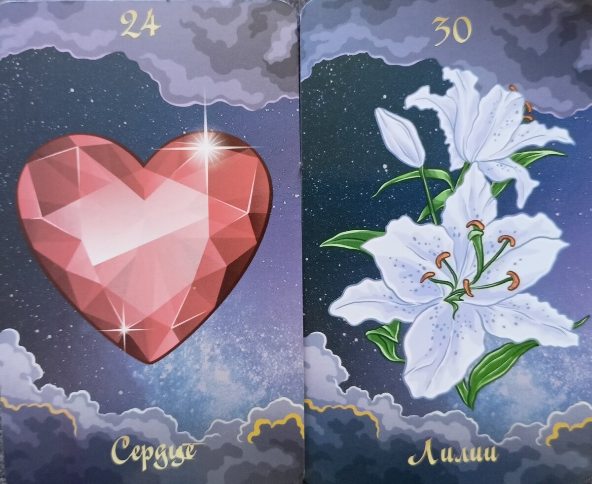 Сердце ❤️ Счастье, дружба, любовь. Карта означает эмоциональный комфорт,эмпатию,гармонию. Здоровье - нарушения сердечной деятельности. Человек эмоциональный,чувствительный, порывистый. Лилии🌸 Добродетель,чистота,избранность. Карта означает счастье, радость,гармоничные отношения. Здоровье - иногда опасность отравления,в целом благоприятная карта. Человек романтичный,духовный, экзальтированный. Прошлое. Очень хорошая карта, означала перемены к лучшему, удачу и решение проблем. Скоро судьба вам улыбнётся, и вы получите то, за что так долго боролись. В любовном раскладе указывает на счастье и вновь вспыхнувшую любовь💏. Настоящее. Экстравагантность, эксцентричность. Скачок вперёд, нестандартность мышления. Любопытство, поиск новых ощущений, неугомонность. Будущее. БОРЬБА. Семерка Жезлов – Аркан неоднозначный. Он несет в себе риск, борьбу, некоторые ограничения, направленные, однако, на достижение поставленной цели и, следовательно, на созидание. Эта карта символизирует мобилизацию усили