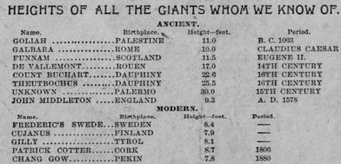 В номере от 23 августа 1896 года New York Journal выпустил статью с подробным описанием существования античных гигантов. "В 1868 при раскопках наткнулись на следы болотных птиц, далее на глубине 5м нашли кости мастодонта, а затем следы, которые вызвали значительно больше интереса и обсуждений. Несколько сотен отпечатков человеческих ног, сделанные в мягкой глине много тысяч лет назад в мировой истории и сохранившиеся благодаря вышележащей метаморфитовой породе. Отпечатки имеют длину 53 см." Далее в статье речь идет и об обнаружении следа длиной в 73см. Думаете, изучили? Закопали обратно.