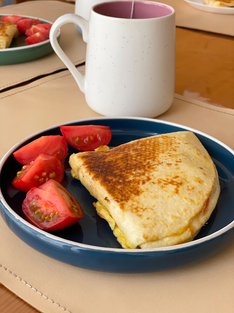 Ещё один завтрак, название которому я не придумала, может у вас есть идеи?) Очень вкусно получается, с начинкой можно поэкспериментировать. Сегодня у нас: колбаса, сыр, помидор, остатки картофельного пюре с вечера. Вместо пюре можно взять зелень, соленые огурцы, или ещё колбасу и сыр. Ингредиенты: На приготовление этого завтрака уйдёт буквально 5-10 минут. Лепешку надрезать как на фото. На каждую четвертинку лаваша выложить пюре, колбасу, помидоры, сыр. Свернуть его 3 раза, чтобы получился треугольник и вся начинка оказалась внутри. Треугольники смазать яйцом. На сковороде, смазанной маслом, обжарить треугольники с одной стороны несколько минут. И с другой. Получается очень вкусно!!! Приятного аппетита!