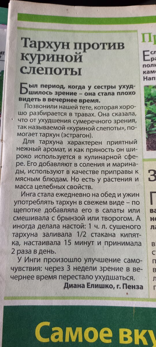 Кому нужны этот рецепт "Тархун против куриной слепоты "