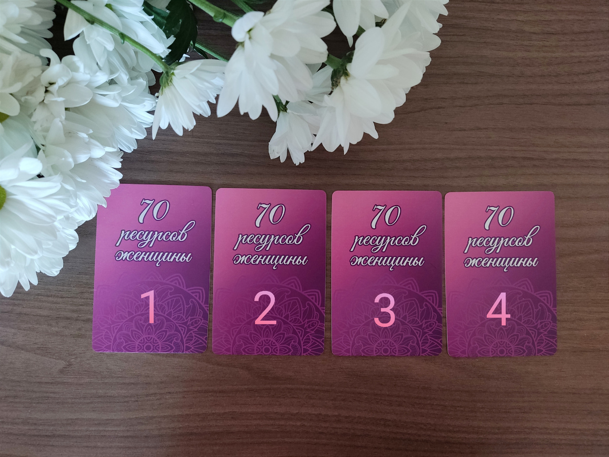 Доброго времени суток всем:) Сегодня я выложу здесь небольшой расклад на метафорических ассоциативных картах на полюбившуюся мной тему. Я уже неоднократно делала расклад на колоде "70 ресурсов женщины" (автор: Мария Будякова). Однако, тема поиска занятия, наполняющего энергией женщину, до сих пор остаётся актуальной. От настроения, состояния женщины зависит многое. Безусловно, настроение женщины отражается на окружающих (это муж и дети в первую очередь). Поэтому для каждой женщины очень важно поддерживать себя в ресурсном состоянии. Итак, начинаю данный расклад. Шаг 1. Задайте себе вопросы "Что наполнит меня энергией в ближайшее время? На какое занятие нужно обратить своё внимание, чтобы войти в ресурсное состояние? " Шаг 2. Выберите одну карту из нижепредложенных. Шаг 3. Рассмотрите внимательно выбранную карту. Напомню Вам, что через метафорические ассоциативные карты мы получаем ответы на вопросы из нашего подсознания. До сих пор удивляюсь как чётко этот метод работает.