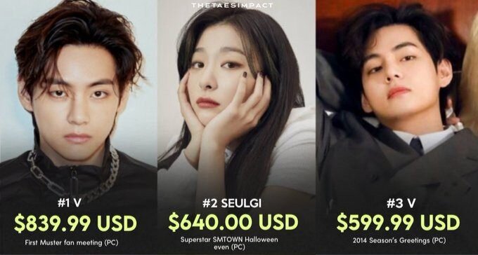 Фотокарточки – важная часть k-pop культуры, пользующаяся большой популярностью среди фанатов. Многие из них становятся настоящими коллекционерами, несмотря на то, что некоторые легендарные карточки тяжело найти, а их стоимость может достигать невероятных цифр.Как, к примеру, фотокарточки с айдолами, которые были проданы по самой высокой цене на аукционах eBay за последние месяцы. 1. Ви из BTS Фотокарточка с первой фанвстречи BTS «Muster» была продана за 839,99 долларов. 2. Сыльги из Red Velvet Фотокарточка с мероприятия SMTOWN «Superstar Halloween» была продана за 640 долларов. 3. Ви из BTS Фотокарточка с Season’s Greetings 2014 года была продана за 599,99 долларов. 4. Чимин из BTS Фотокарточка с Season’s Greetings 2014 года была продана за 590 долларов. 5. BTS Фотокарточка группы была продана за 459,99 долларов 6. Чонгук из BTS Фотокарточка из специального издания альбома Skool Luv Affair была продана за 439,99 долларов. 7. Чонгук, Чимин, Ви и Шуга из BTS Фотокарточки из BTS NOW были