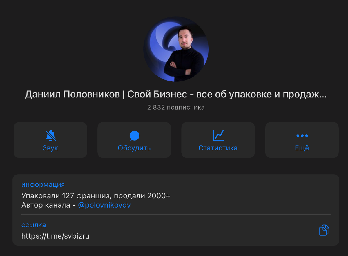 Всем привет! Молчать больше нельзя! Все больше и больше предпринимателей и экспертов с высоким средним чеком понимают, что телеграмм сейчас, это не только куча групп и каналов в которые мы не заходим, но и отличный инструмент для маркетинга. В этом примере расскажу, как мы сделали больше 1 000 000р. для компании «Свой бизнес» и привлекли в телеграмм канал основателя 2800 подписчиков по 60р., всего за 1 месяц работы. Дано: К нам обратилась компания «Свой бизнес», с целью протестировать новый формат рекламы - продвижение в телеграм. Не было ни телеграм канала, ни понятия, как продвигаться в телеграм канале. Что мы сделали: В итоге с вебинара компания закрыла 2 клиентов со средним чеком 500 000р. Немного картинок: ТГ Канал: Средняя цена подписчика: Видео-отзыв: Если вы эксперт, наставник, Коуч, предприниматель, продаете на чек от 100тр. и еще не используете силу телеграмм для своего бренда - вы совершаете тотальную ошибку!) Но, мы можем исправить это, обращайтесь за бесплатной диа