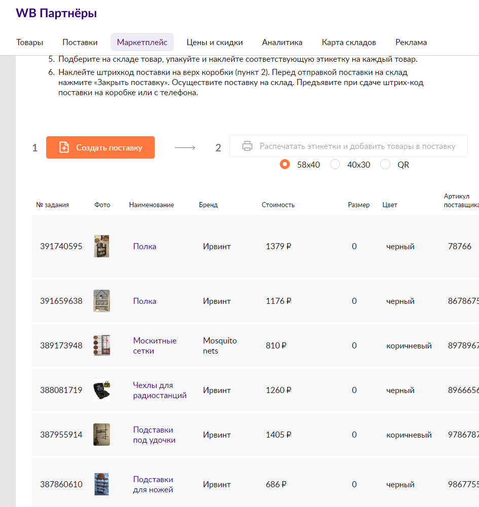 Скриншот части последних заказов на вайлдбериз в перемешку с товарами не моего производства (москитная сетка и чехлы):
