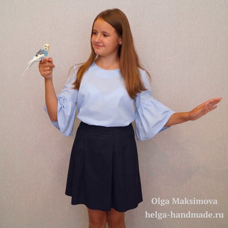 Началась подготовка к школе. Сегодня покажу, как сшить блузку полуприлегающего силуэта, с втачными рукавами с оборкой. Дочка хотела что-то интересное и выбрала данную модель. Интересный вариант блузки на лето, в офис или в школу. Шить достаточно просто.