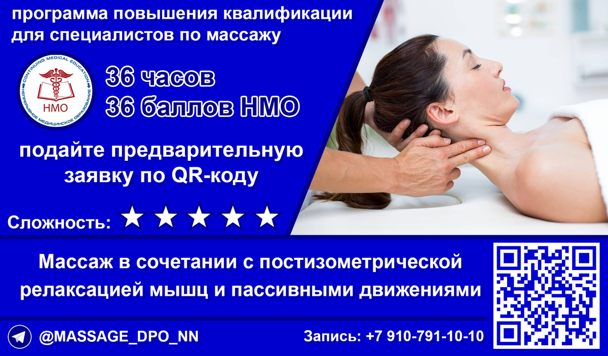 Массаж в сочетании с постизометрической релаксацией мышц и пассивными движениями | Обучение в Нижнем Новгороде - 36 часов