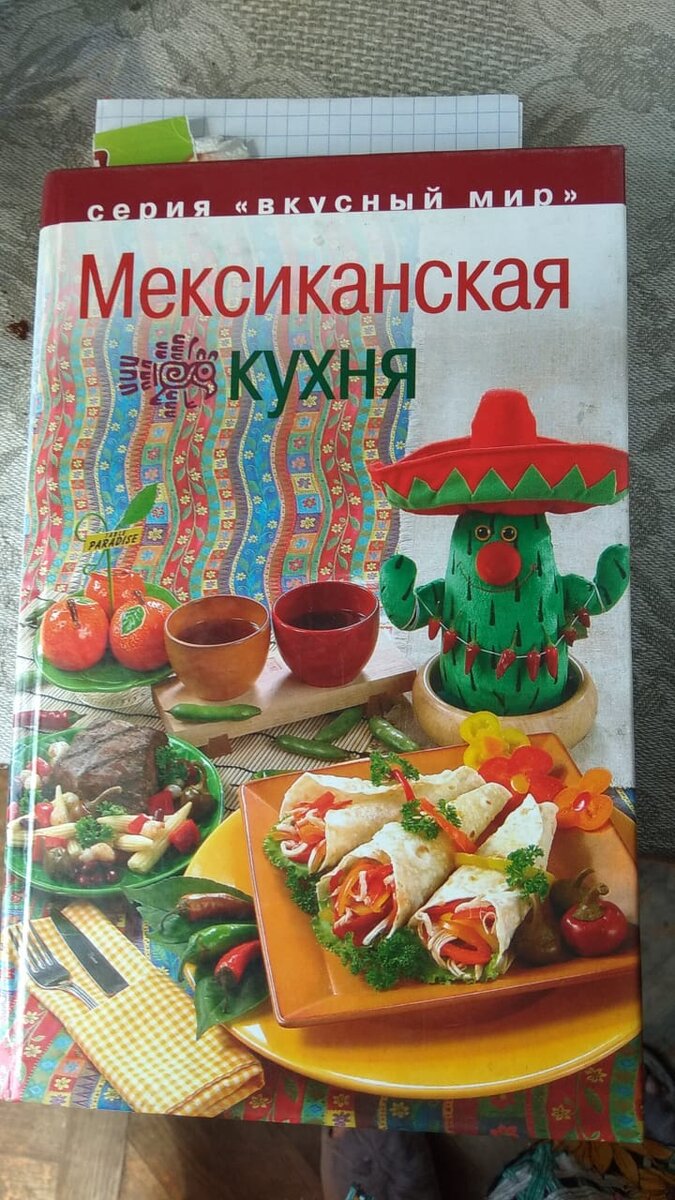 На самом деле я тыщу раз зарекалась покупать книжки иноземной кухни, поскольку отлично понимаю, что никогда не приготовлю экзотические блюда так, как это делают представители народов, их изобретавших. Во-вторых, одни и те же продукты в разных странах имеют далеко не одинаковый вкус. Проверено на борще в Нью-Йорке - вареный картон в воде свекольного цвета. С оливье та же ерунда. В-третьих, кулинарные книжки, выпускавшиеся пачками двадцать лет назад, имели свою переводную специфику. С первого раза и не поймешь, что и как делать. Открываю "Мексиканскую кухню", где, к своему удивлению, вижу кучу закладок. Неужели я что-то готовила? Видимо, да, если внутри есть мои пометки ручкой. Рецепты, конечно, уровень "космос". Напиток с притягательным названием "Монтесума", например. Растопить 50 гр шоколада, залить двумя третями стакана молока, три раза довести до кипения, снимая с огня. Взбить и подать горячим. Напиток сангрита с испанским оттенком очень нравился мужчинам. Особенно по утрам после в
