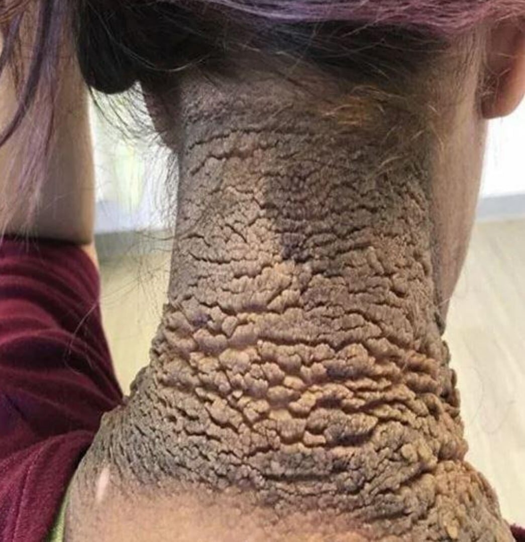 Черный акантоз – это медицинский признак, характеризующийся плохо выраженной бархатистой гиперпигментацией кожи от коричневого до черного цвета. Обычно он обнаруживается в складках тела, таких как задние и боковые складки шеи, подмышечные впадины, пах, пупок, лоб и другие области.