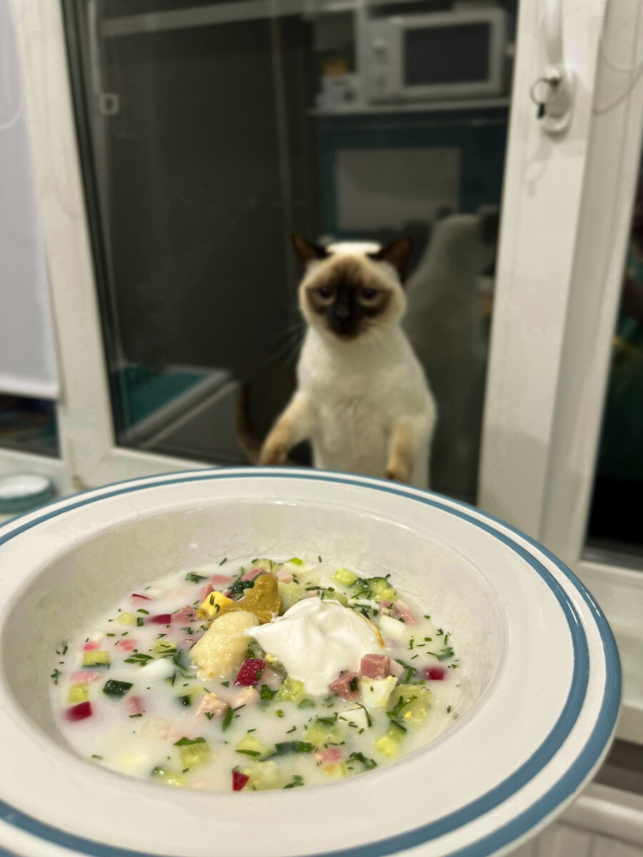 Сегодня фкусно жрем окрошку Есть такие блюда, о которые вечно ломаются копья в комментариевых битвах, все считают свой вариант самым распездатым, а всех остальных - безумцами, которых нужно срочно вернуть на путь истинный. Окрошка - одно из таких блюд. Но сегодня мы копья ломать не будем, я просто расскажу вам, как ее готовлю я, и гарантирую, что это очень вкусно. А в комментах рассказывайте, как готовите вы - может будем пиздица за тру-окрошку, а может чего-нибудь интересного почерпнём друг от друга. Первое - картошка в окрошке не нужна. Если вы всегда добавляете картошку - попробуйте приготовить без неё, честное жиртрестовское, будет лучше. Второе - я никогда не использую варёную колбасу. Господь создал варёную колбасу только для одного - чтобы ночью делать из неё студенческие бутеры с хлебом и мазиком и жрац их в романтическом сиянии лампы из холодильника. Не гневите господа! Только мясо. Любое - варёное, запечённое, хоть курица, хоть индейка, хоть свинина, хоть говядина, а если взя