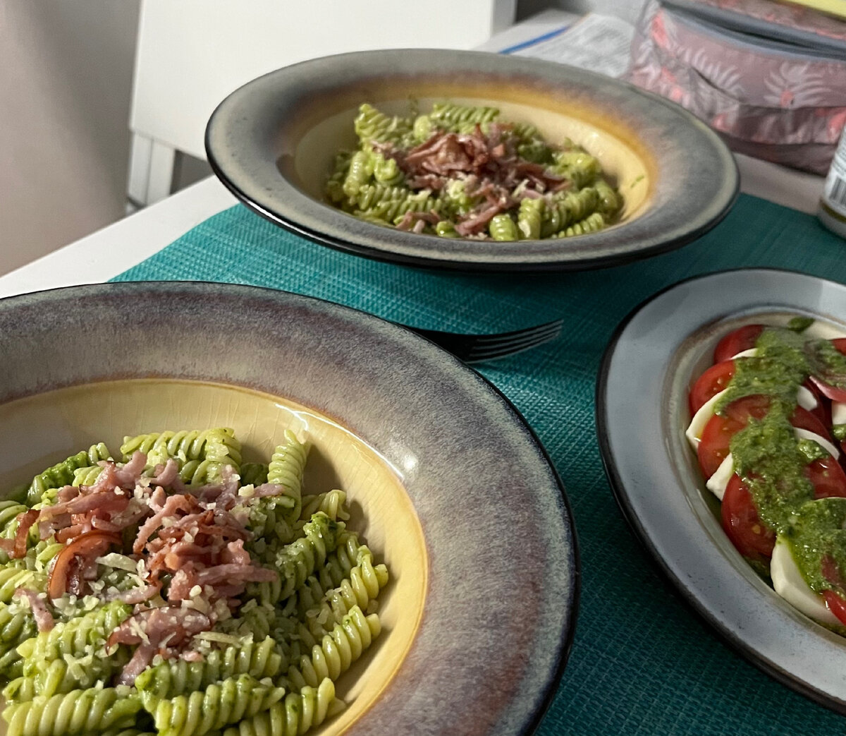 Рассказываю, как сделать «Молниеносные ужины для ленивых свинин» ещё более молниеносными: СОУС ПЕСТО! Просто нахерачьте песто и держите его в холодосе - у вас всегда под рукой идеальный соус к пасте, идеальная заправка для салатов, идеальный соус для сэндвича, да хоть яйца на нем (вместо масла) жарьте - будет заебись. Тем более что сам песто делать минут наверное 5, если не меньше. Шо нам понадобится: 🌿 увесистый пучок зелёного базилика 🧀 пару ст ложек тертого пармезана 🌰 пару ст ложек кедровых орехов (легко заменяются любыми другими орехами, например кешью или грецкими) 🧄 зуб чеснока 🍋 столовая ложка лимонного сока 🍶 полстакана оливкового масла (можно и подсолнечное, только рафинированное без запаха тогда) Соль/перец по щепотке Рецепт очень сложный. Зашвыриваете все в блендер, нажимаете на кнопку и держите минуту, пока не получится песто Фсе, вуалябля! В герметичную банку и в холодос. Хранится 5-7 дней точно. На фото как раз ужин из того, что завалялось в холодильнике, с помощью