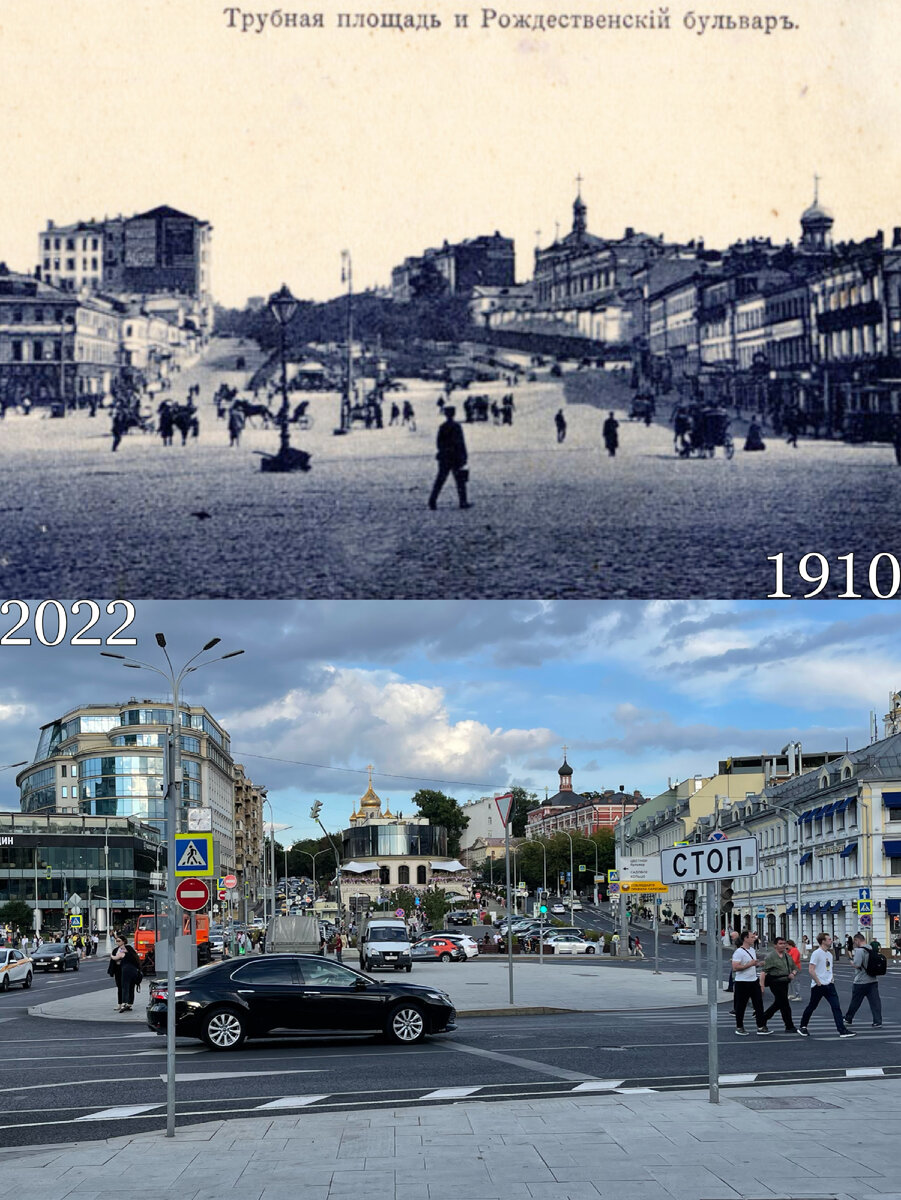 Приветствую вас на новом путешествии по Москве сквозь время, отправляемся в прошлое! 1) Трубная площадь Знаете ли вы почему площадь называется Трубной? Раньше прямо здесь протекала река Неглинка. В Москву она попадала через стену Белого города, которые шли вдоль всего Бульварного кольца. Специально для речки в стене имелось отверстие, похожее на трубу, отсюда и название площади. О протекавшей когда-то реке нам напоминает рельеф города. Наверх уходит Рождественский бульвар – высокий берег реки Неглинка. 2) Дашков переулок Почти все постройки в переулке были построены в XIX веке Андреем Васильевичем Дашковым. В честь него и назвали переулок. От владения сохранились два флигеля, а на месте главного здания усадьбы сейчас находится жилой дом. 3) Театральный проезд Место сильно изменилось, не так ли? В 1930-е Театральный проезд стал передовой площадкой реализации плана реконструкции Москвы 1935 года. Поэтому стена Китай-города пошла на слом: городу нужны были широкие дороги. Глядя на это