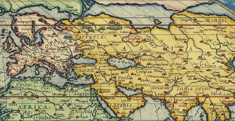 Доказательства этому достаточно экстравагантные и по большому счёту зыбкие. Потому что начинается всё с некой «Книги познания» за авторством безымянного монаха-францисканца, изданной в Испании в 1345-1350 годах, где говорится что царство Пресвитера Иоанна «располагалось в центре Азии, называлось оно Ардеселиб и столицей имело город Грасиону. Рядом с Ардеселибом располагался Кара-Китай, включавший такие провинции, как Иркания и Готия. И тут же нам выдают то, что под Ирканией можно понимать юргинскую лесостепь (да, окрестности современного города Юрга на севере Кузбасса — Святой Зализняк, спаси!), а Готия не может интерпретироваться иначе, чем земля готов.