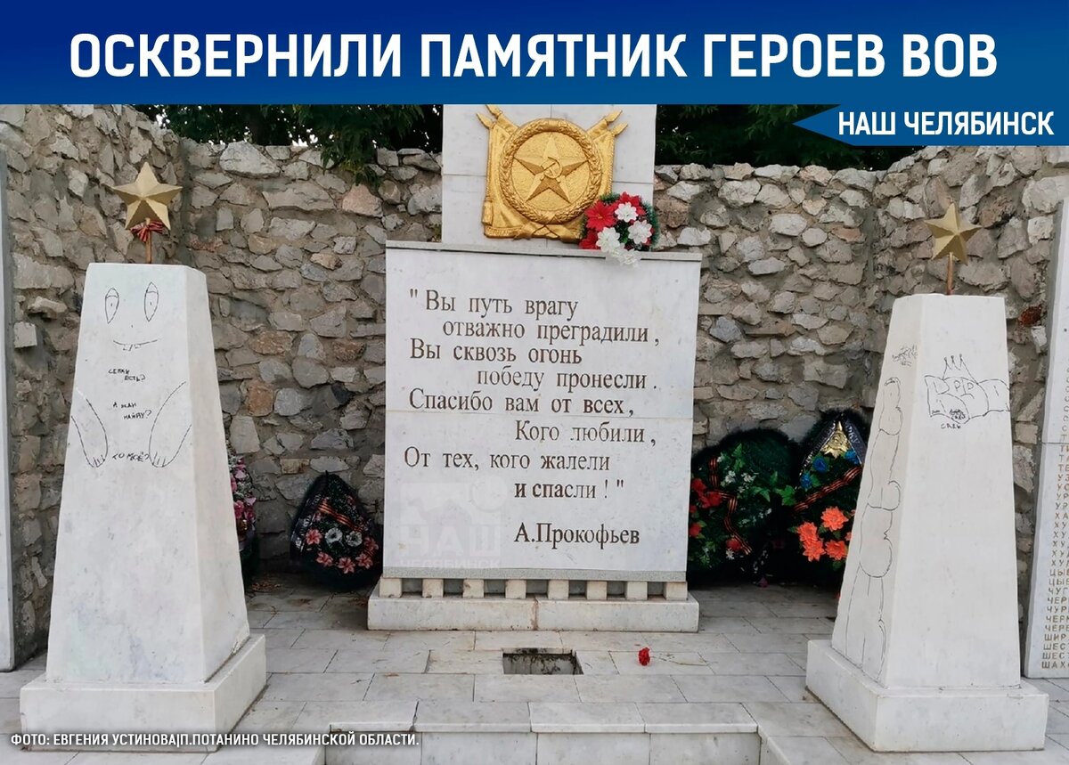 😨 Сегодня ночью в поселке Потанино (Копейск) вандалы изрисовали мемориал и украли Вечный огонь. - Неблагодарные потомки! Чьи-то руки посягнули на светлую память защитников нашей страны в годы ВОВ. - написала в паблике "п.Потанино Челябинской области" автор фото Евгения Устинова. - Куда катимся? Тихий ужас!!! ◾В полиции подтвердили информацию об инциденте. Сейчас ведутся поиски виновных.