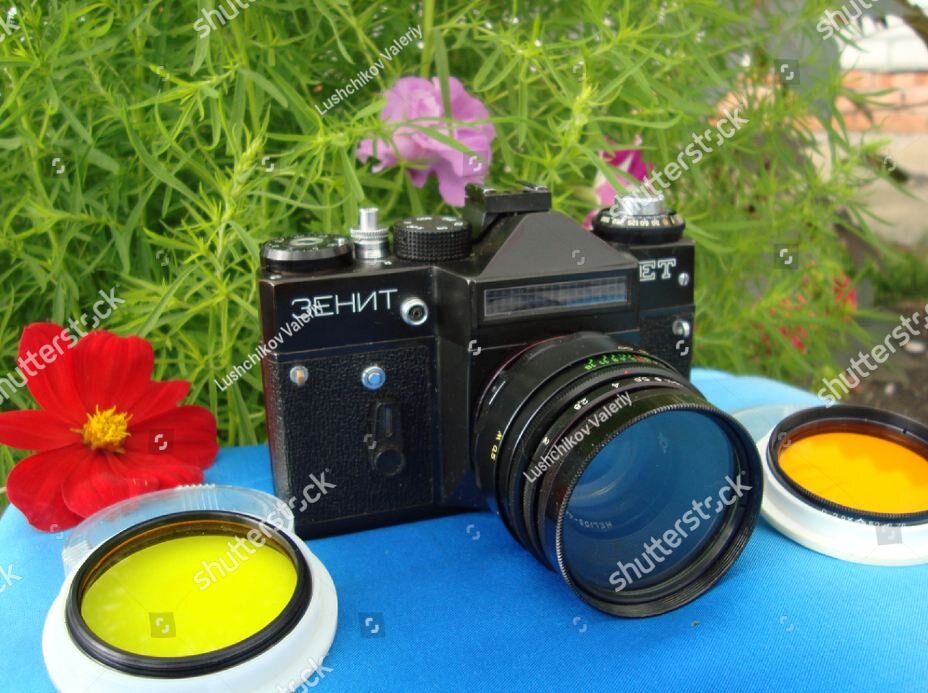 Всем добрый день! Вот собственно на фотографии мой первый фотоаппарат и он зеркальный и советский и железный и я бы сказал просто не убиваемый это детище советского танкостроения :). Фото было сделано на еще один интересный фотоаппарат, который у меня есть Sony Cyber-shot DSC-W110, который до сих пор на ходу, есть некоторые косячки у него, но он фотографирует, что приятно. Приобрел я данный фотик (Зенит ЕТ) в те времена, когда в ходу были пленочные мыльницы, в которых можно было "высветить" день съемки и прочее и это было тогда круто. Но мы с отцом пошли в комиссионку и взяли этого "монстра" :) моя мама была в бешенстве от того, что мы взяли такое старое чудище, но как потом оказалось это совсем не плохой экземпляр фотоаппарата. Как мы видим на фото летний сад и в цветах поставлен на табурет черный фотоаппарат Зенит ЕТ и аж целых три фильтра к нему. При покупке мне достался сам фотик, твердый чехол, куча макроколец и какие-то придурковатые насадки. Года четыре, пять назад нужны были де