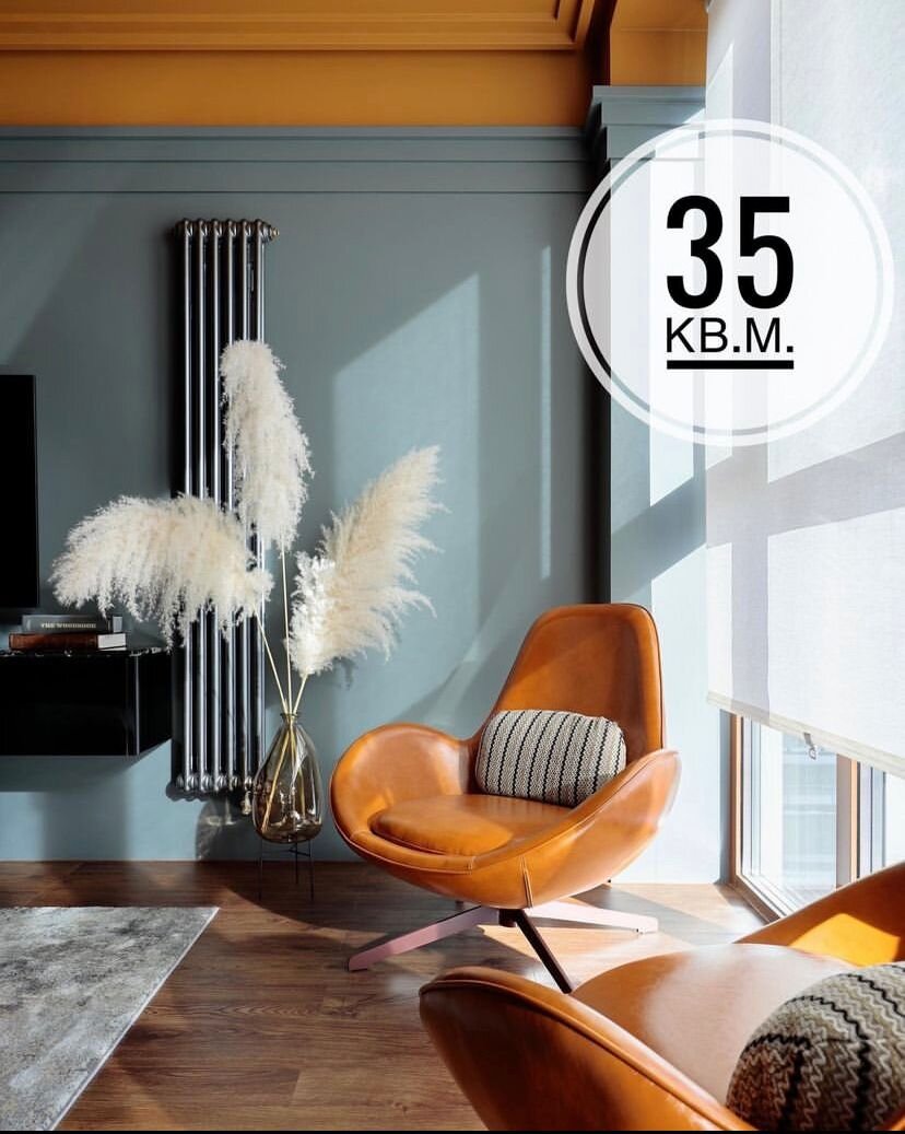 Яркие и смелые решения в однокомнатной квартире, 35 кв.м.