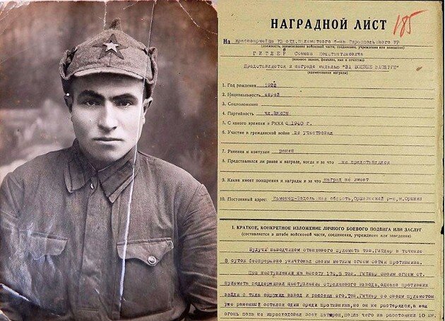 Представляете, каково было командиру и комиссару наградные листы подписывать под такой фамилией. Поставить подпись было страшно, это грозило огромными неприятностями, особенно, в то не простое военное время.