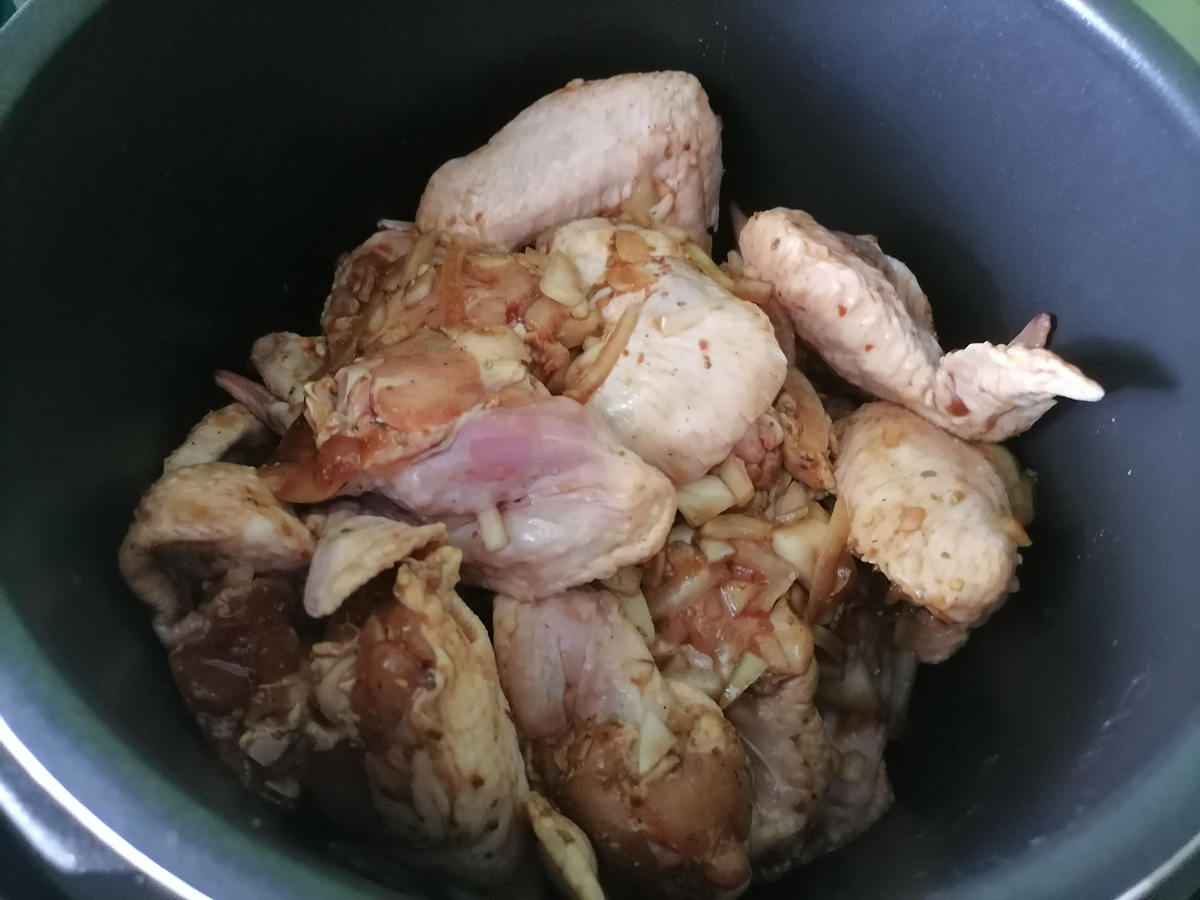 В моей копилке мало рецептов с мясом. Я его ем крайне редко. Прям редко редко. Но крылья решила поесть. Замариновала крылья в соевом соусе, специях и луке. Солить не люблю, поэтому в рецепте использовала соус. Выложила в чашу (на дно на лила чуть масла) крылья с маринадом. Выбрала режим "Жарка /фритюр", 160 С, 5 минут. Крышка закрыта клапан закрыт. По виду получились крылья как в рукаве. Слила всю жидкость (сварю мужу суп) и поставила на второй цикл: Режим "Жарка", 160 С, 5 минут. Крышка и клапан закрыты. Получились обычные жареные, его при этом сочные крылья.