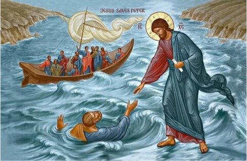 14 августа, 2022 г. Евангелие от Матфея, 14 глава ХОЖДЕНИЕ ПО ВОДАМ 22 И тотчас понудил Иисус учеников Своих войти в лодку и отправиться прежде Его на другую сторону, пока Он отпустит народ. 23 И, отпустив народ, Он взошёл на гору помолиться наедине; и вечером оставался там один. 24 А лодка была уже на середине моря, и её било волнами, потому что ветер был противный. 25 В четвёртую же стражу ночи пошёл к ним Иисус, идя по морю. 26 И ученики, увидев Его, идущего по морю, встревожились и говорили: это призрак; и от страха вскричали. 27 Но Иисус тотчас заговорил с ними и сказал: ободритесь; это Я, не бойтесь. 28 Пётр сказал Ему в ответ: Господи! если это Ты, повели мне прийти к Тебе по воде. 29 Он же сказал: иди. И, выйдя из лодки, Пётр пошёл по воде, чтобы подойти к Иисусу, 30 но, видя сильный ветер, испугался и, начав утопать, закричал: Господи! спаси меня. 31 Иисус тотчас простёр руку, поддержал его и говорит ему: маловерный! зачем ты усомнился? 32 И, когда вошли они в лодку, ветер ут