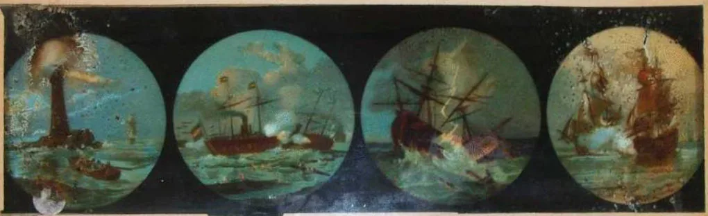 В 1848 г. в Англии Клерк с помощью "волшебного фонаря" иллюстрировал свой курс лекций в Политехническом институте.
