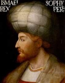 Так выглядел шах Исмаил Сефави (1501-1524г. Основатель династии Сефевадов в Иране. А рожден он был в Азербайджане, в городе Ардебиль. Он же заново восстановил Иранскую империю и ввёл шиизм в качестве основной религии. Введение шиизма было с политической точки зрения - отделением от арабского мира и сунитской османской империи. На этом изображении, он если не блондин, то явно рыжий. Историки считают, что эта династия была не была тюркского происхождения, хотя и была тюркоязычна и говорила на одинаковом языке с османами. Однако опорой власти Сефевидов стало тюркское племя кызылбаши - или красноголовые. Не потому что они были рыжие как шах Исмаил. А потому что носили чалму с двенадцатью пурпурными полосками. В те времена религиозное сознание было доминирующим . Чалма символизировала двенадцать шиитских имамов погибших от рук сунитов. Как видим на изображение Исмаил в чалме без полос. Его происхождение называют курдским. Т.е Сефевиды были тюркиризированными иранцами. Вообще же до 18 в