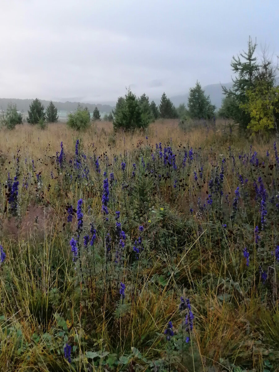 Съездили мы тут в однодневную поездку до Курайской степи... То есть почти весь Чуйский тракт был "пройден". К несчастью, Северо-Чуйский хребет, ради которого отчасти все и затевалось, скромно скрылся за тучами, оставив только манящее ощущение чего-то огромного, парящего на горизонте. Правда, уже на обратном пути на одном из поворотов вдруг выглянуло солнце, и над нами нависли снежные вершины. Что ж, очередной повод вернуться) Зато по дороге насмотрелись на чудеса - погода нам отсыпала разного - и тумана, и туч, и дождика, и солнца. Семинский перевал на рассвете встретил нас густым туманом. Чувствовала себя ежиком) Виды по сравнению с июнем очень сильно изменились - цветут совершенно другие растения. Аконит и кровохлебка: Кстати, совершенно не ожидала наткнуться на кровохлебку тупую. Фотографию в запарке не сделала... А вот тут что-то кружевное, похожее на кермек: Кедры в тумане выглядят совершенно волшебно: Нам туда: Чике-Таман тоже окутан туманом. С одной стороны еще что-то видно, с