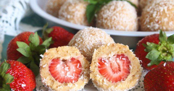 📖 Ингредиенты: - Печенье (любое) - 200 г. - Масло сливочное - 90 г. - Творог (9%) - 150 г. - Клубника - 150 г. - Кокосовая стружка - 20 г. - Сахарная пудра - 2 ст. л. 🧑🏻🍳 Приготовление: 1. Печенье поломать на кусочки и поместить в блендер. Измельчить печенье в крошку. Переложить крошку в другую емкость. 2. Сливочное масло растопить и добавить в крошку. Хорошо перемешать. Добавить творог и сахарную пудру. Хорошо вымесить тесто, желательно руками. 3. Свежую клубнику почистить, помыть. От теста отщипнуть небольшой кусочек, скатать в шарик величиной с грецкий орех, размять его в лепешку. 4. В серединку лепешки положить клубнику. Аккуратно облепить ягоду тестом и скатать в шарик. Таким образом делать шарики, пока не закончится тесто. 5. Каждый шарик обвалять в кокосовой стружке, выложить на блюдо и убрать в холодильник на 20 минут для застывания.