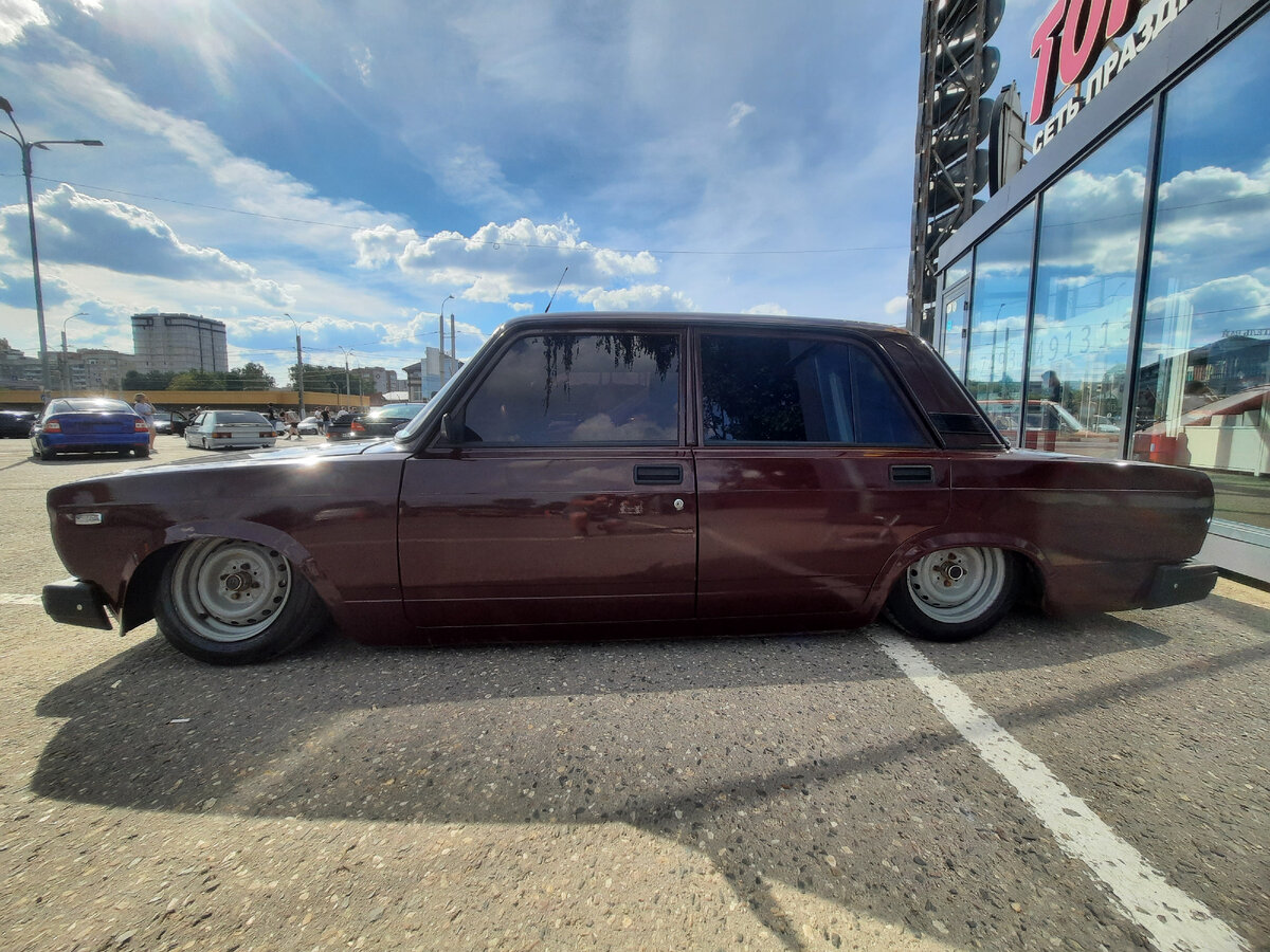 Молодые ребята - мастера, с руками из правильного места, организовали выставку своих прокаченных, гоночных машин, по всем классическим технологиям автоспорта СССР. Преимущественно все автомобили периода советского автопрома. В этой статье покажу модели, так называемая - "КЛАССИКА ЖИГУЛИ" Посмотрите какие уникальные экспонаты попадались на глаза: 👇 Листайте галерею по стрелочкам на фото в бок, там много разных ракурсов: ВАЗ 2107 🔜 ВАЗ 2103 🔜 ВАЗ 2107 🔜 ВАЗ 2103 🔜 На этой импровизированной автотусовке, присутствовали даже умельцы из солнечной Туркмении со своей прокаченной ВАЗ 2107: 🔜 На счёт туркменского тюнинга конечно же, скорее всего это некая шутка российских парней. Художников стилистов - автовладельцев и мастеров, своих технических шедевров. Данное событие было замечено в г. Иванове 13 августа 2022 года, в ДЕНЬ ГОРОДА. ✔️ Как видно, отечественные машины не так уж и плохи в доработанном исполнении В следующих публикациях конечно же покажу и более современные, прокаченные экзе