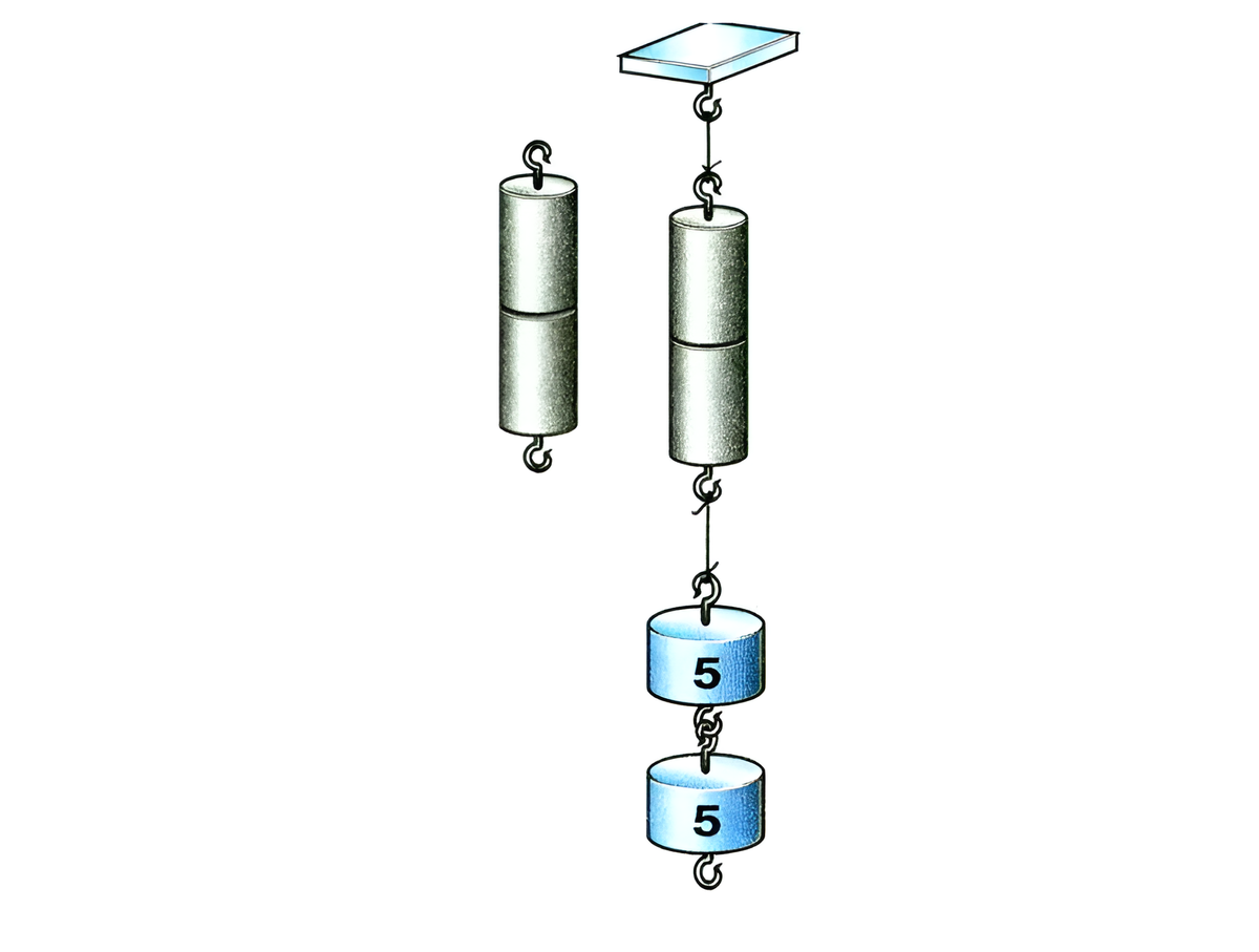 Мы видим, что твердые тела и жидкости не распадаются на отдельные молекулы, несмотря на то что молекулы разделены промежутками и находятся в непрерывном беспорядочном движении. Значит, есть причины, удерживающие молекулы друг около друга, не позволяющие им разлетаться. Тела не только не распадаются на отдельные молекулы, но твердое тело даже трудно растянуть или разломать. Чем же объяснить, что молекулы в телах не только удерживаются друг около друга, но и в некоторых случаях промежутки между ними трудно увеличить? Дело в том, что между молекулами существует взаимное притяжение. Каждая молекула притягивает к себе соседние молекулы и сама притягивается к ним. Разломим кусочек мела на две части и снова составим их. Они не будут удерживаться друг около друга. Почему? Притяжение между молекулами становится заметным лишь тогда, когда они находятся очень близко одна от другой. Уже на расстояниях, несколько больших размеров самих молекул, притяжение молекул значительно ослабевает. Ничтожно ма