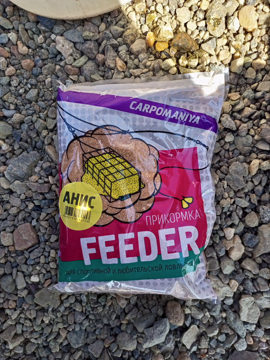Приветствую, рыбаки! Решил почаще публиковать отчеты о рыбалке, ведь это полезно для нас, рыбаков, сам часто читаю такие отчеты и что-то беру себе на вооружение, надеюсь и вам такой формат "зайдет". Ребята из Карпомании любезно предоставили мне свою обновленную прикормку из серии "Фидер" на обзор и зерновые, которые у них я просто обожаю. Карповую прикормку я успешно испытал с детьми, настало время прикормки с ароматом аниса. Был выбран пруд с довольно большим количеством леща, на него и ставка. Решил сделать соревнование, анис и чеснок, отдельно замешал немного той же прикормки с чесночным ароматизатором. Нашел на дне полосу из мелкого камешка, там и остановился, дистанция около 40 метров, глубина, около 4-х. Идеально для фидерной ловли. Прикормка, объемом 750 грамм, как раз на дневную сессию, плюс я всегда добавляю пшено или зерновые, сегодня пшено сготовить не успел, так что будем баловать леща крушёнными кукурузой, пшеницей и горохом. Добавляю абсолютно всегда мелассу Отправляем на