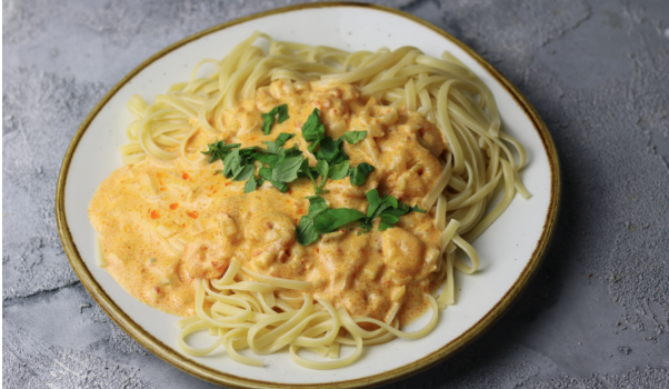 Привет, дорогие ♥ Сегодня я принесла вам свой молниеносный рецепт вкусной лапши в бранч-соусе с креветками. Нам нравится бранч-творожный сыр с паприкой пепперони, и с ним вы можете в кратчайшие сроки создать вкусный соус для макарон.... Я добавил креветки в соус пепперони из паприки, который я лично считаю очень вкусным, но, конечно, вы можете их и не добавлять… Ингредиенты (на 2 порции): Подготовка: Сначала налейте воду для макарон и сварите макароны. А пока приготовим соус, ведь он супербыстрый. Мелко нарежьте лук и четверть помидоры черри. Разогрейте в сковороде немного масла, обжарьте в нем лук, добавьте креветки и немного обжарьте. Затем добавьте помидоры и бранч, все хорошо перемешайте, варите на медленном огне до готовности макарон, время от времени помешивая. В конце приправить по вкусу солью и перцем и подавать с макаронами. Если хотите, добавьте сверху немного свежего нарезанного базилика. Получайте удовольствие, может быть, вы можете использовать рецепт, если вам нужно что-т