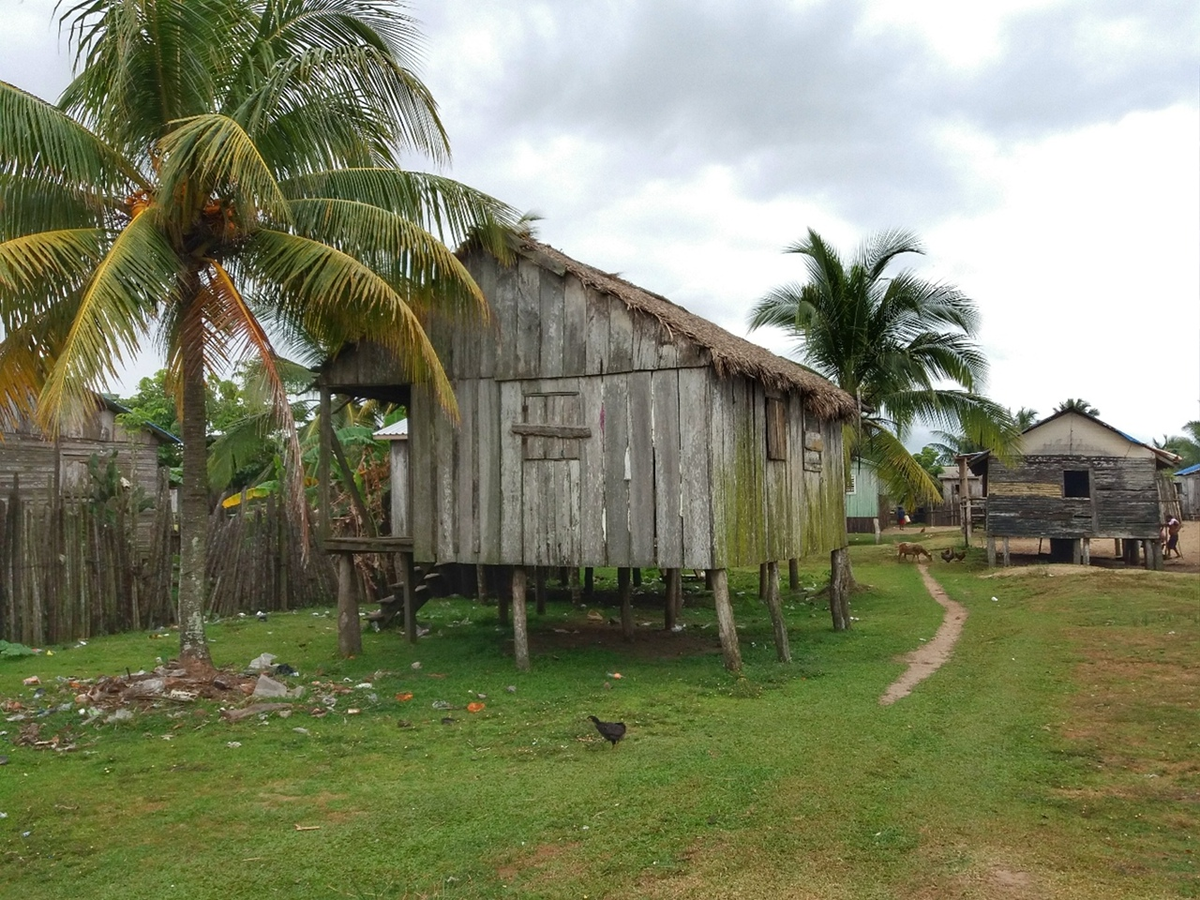 Ла Плая, это миленькая аутентичная деревня на болотах Гондураса, в которой тесным рядом стоят колченогие дома. В ней почти нет заборов и понять где ходить можно, а где нет достаточно сложно - люди шныряют везде. С трудом там нашел себе завтрак, да и то с помощью местного жителя - тот долго водил по домам, в поисках тех, кто готовит еду и может с ней поделиться. В итоге нашел лепешки балеадас всего за 15 лемпир! Ими позавтракал и пошел на побережье… Песчаная коса, которую мне предстояло пройти, была длинною в двадцать километров. Под бочком длинного пляжа расположилось три крупных деревни народности гарифуна, а заканчивался он рекой Платано, за которой находилась еще одна деревня местных жителей. Идти по песку под палящим солнцем казалось не легче, чем по речной грязи. Раскаленный песок вихрился при каждом порыве и оседал на лице, прямо на крем от загара, босые ноги быстро уставали шагать по зоне прибоя. А еще рюкзак за плечами, от которого нет никакой возможности избавиться (иногда