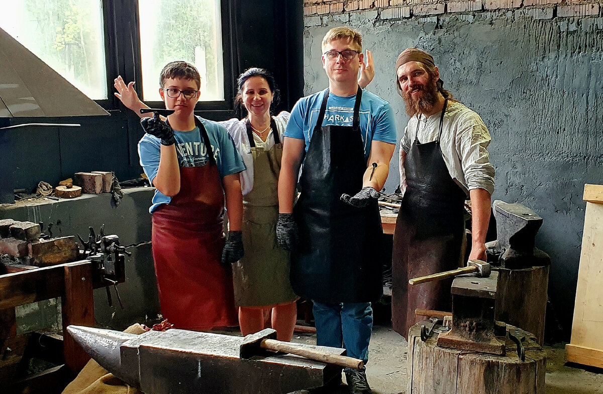 Меня зовут Ирина. Я работаю в туризме и рассказываю о своих путешествиях, длительных и не очень, за границей и по России. При любой возможности беру в поездку сына, подбираю интересные для него маршруты. Наш мир прекрасен и достоин того, чтобы его увидел каждый. Сегодня я продолжаю рассказ о путешествии в Ярославль из Москвы. Мы приехали в кузню "Ярый молот" сковать гвоздь на удачу. В Ярославле нас встречал хозяин кузницы Сергей Гальцов. Когда я обговаривала мастер-класс, то делала это без предварительного маркетингового исследования, методом тыка. Тык - хочу сюда, ура - едем. Как обычная среднестатистическая женщина, которая планирует, не планируя. И только после возвращения домой полистала странички интернета, пытаясь найти больше информации о человеке, который учил нас работать с мехами и наковальней. И вот что я нашла: - изделия кузнеца Сергея Гальцова признаны областным художественно-экспертным советом Ярославля изделиями народных промыслов, - нестандартный подход к работе позвол