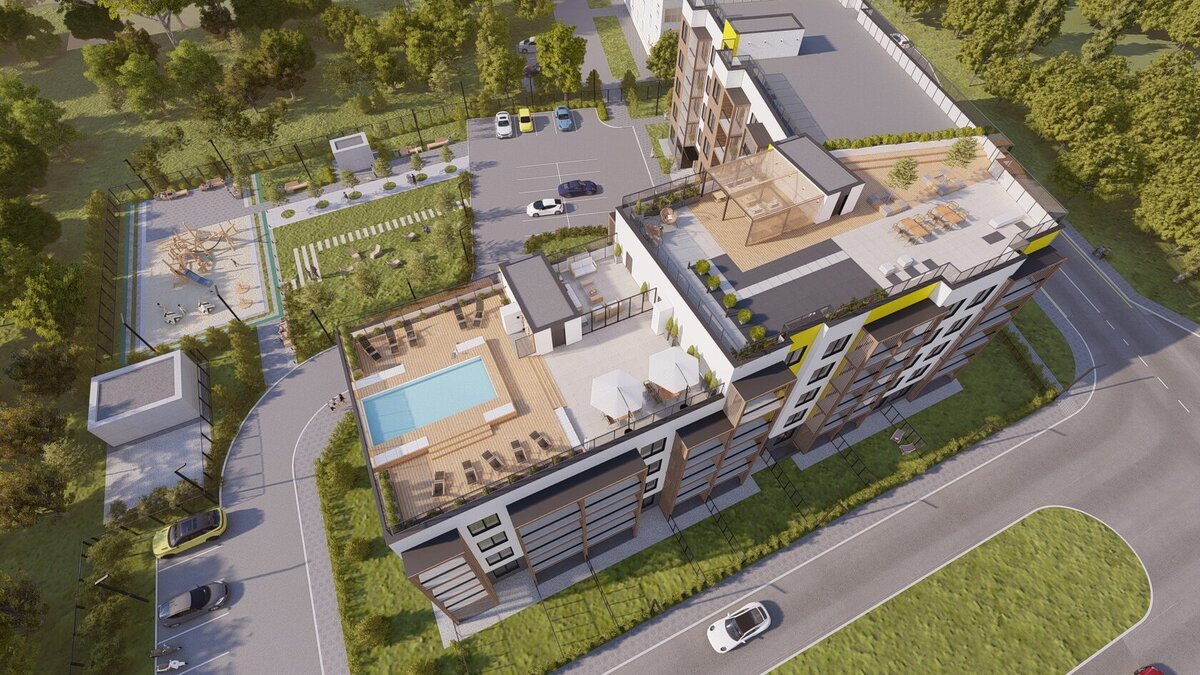 Современный жилой комплекс с бассейном на крыше