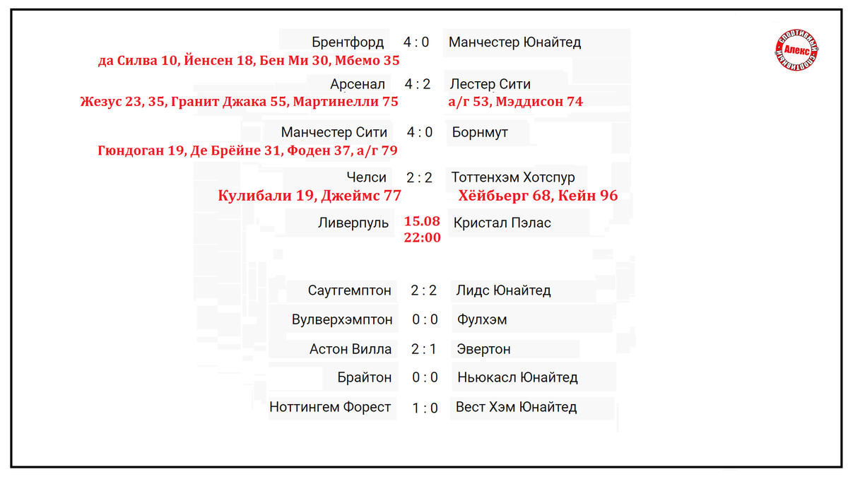 Брентфорд обыграл грозный МЮ 4:0. Манкунианцы потерпели 2-е фиаско. Напомню, в прошлом туре было поражение от Брайтона. Ни за что не поверил бы, если мне перед матчем сказали, что Манчестер пропустит все мячи в первом тайме. Арсенал выиграл у Лестера 4:2. Жезус приложил ногу ко всем голам своей новой команды, так как забил 2 гола и отдал 2 передачи. У канониров – 3 победы подряд над Севильей, Кристал Пэласом и Лестером. Манчестер Сити отгрузил Борнмуту 4 мяча. Фоден и Де Брюйне записали по голу и передаче. В истории взаимоотношений «горожане» выиграли 12-й матч кряду. Последний раз они оступились в 1999 году, когда очный матч закончился 0:0. Подписчики спрашивают: братишка как тебя поддержать. Ссылочки внизу. Ваша помощь сейчас, как свет в конце туннеля. Здоровья вам. Центральная игра тура состоится в воскресенье. Антонио Конте на 96-й минуте спасся с бывшей командой. Челси - Тоттенхэм 2:2. Выручил «лиловых» Гарри Кейн. А вот «синяя субмарина» с юго-запада Лондона выиграла до этого 3 м