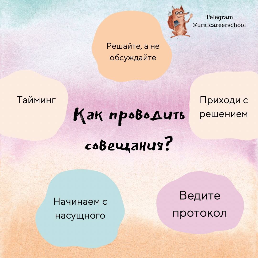 Когда я работал в финансовой компании, то на протяжении полугода проводил «адский понедельник». Дел было много и казалось, что если засунуть все необходимые еженедельные координации в 1 рабочий день, то как будто останется больше времени. Вот так и получилось, что у меня был денёк, в который умещалось 9 совещаний. Понятное дело, под занавес рабочего дня я был никакой и тем, кто приходил уже даже в районе 15:00 доставался выжатый и ни на что неспособный руководитель. Подозреваю, что именно поэтому у нас страдал маркетинг.🤦 Но польза от этой истории вот какая. Так как я не мог выделить каждому совещанию больше чем полчаса, то пришлось создать некий шаблон и базовые правила, которым следуют все участники. Вот они: 1. Собирайтесь не для обсуждения, а для принятия решений. Это автоматически означает, что у собрания есть повестка, а если ее нет, то собираться не нужно. 2. Не приходи с проблемой, приходи с решением. Если на совещание выносится какая-то нештатная ситуация, то до совещания отв