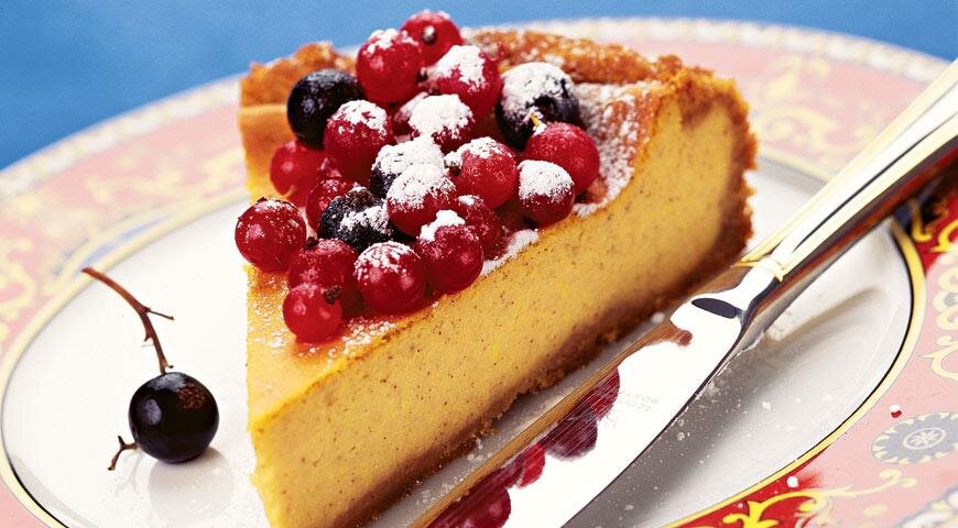Для коржа: Для начинки: ПОШАГОВЫЙ РЕЦЕПТ ПРИГОТОВЛЕНИЯ Шаг 1 Форму для выпечки диаметром 22 см (для чизкейка наиболее подходят разъемные формы с антипригарным покрытием) смазать маслом. Грецкие орехи измельчить в блендере. Шаг 2 Смешать крошки печенья, орехи, сахар и масло в однородную массу. Уложить в форму, сделав бортики, разровнять смоченными водой руками. Накрыть пищевой пленкой и поставить в холодильник на 1 ч. Шаг 3 Для начинки печеную тыкву измельчить блендером в пюре. Если пюре получается жидким, выложить его в сито, застеленное двойным слоем марли, и оставить на 1 ч, чтобы стекла жидкость. Добавить в тыквенное пюре яйца, сливки, половину сахара, виски и ванильный сахар. Тщательно перемешать. Шаг 4 Оставшийся сахар смешать с корицей, мускатным орехом и солью. Добавить сливочный сыр и творог. Взбить миксером в пышную массу в течение 3 мин. Иногда в начинку добавляют 1–2 ст. л. пшеничной или кукурузной муки. Начинка получается при этом более плотной, но не такой нежной. Шаг 5 Пр