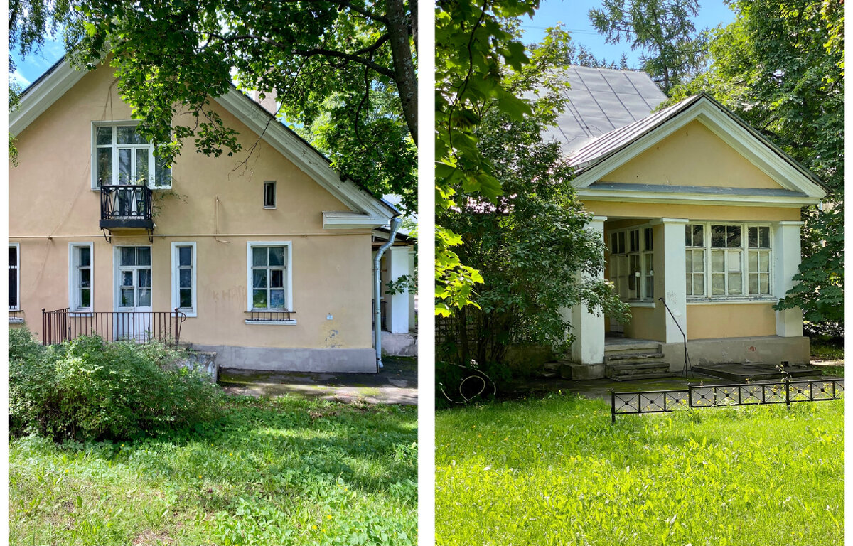 Обычно коттеджами («немецкими») в Петербурге называют двухэтажные жилые дома на 8-12 квартир, возведённые в конце 1940-х — начале 1950-х. Но есть домики тех же годов постройки ещё более компактные! В Сестрорецке построено 4 таких дома. По два с обеих сторон улицы Володарского. Причём интересно, что дома 30 и 32 возведены в 1949 году, а 39 и 43 — в 1955 году! Разрыв в целых 6 лет! Судя по ограде, дома строились для работников Сестрорецкого завода им. Воскова. Рядом ворота, сейчас не действующие. Думаю, что воротами и калитками с улицы специально не особо пользуются, чтобы сохранить большую приватность. Дома стоят в одну линию с двухэтажными послевоенными домами и составляют единый ансамбль. Послевоенной застройкой Сестрорецка, как и Новой Деревни (ул. Савушкина) занимался архитектор Н.М. Назарьин. Каждый такой домик рассчитан на 2 квартиры. Такая идея расселения использовалась нередко и раньше в деревянных домах и до сих пор даже в Ленинградской области можно встреть дома на 2 сем