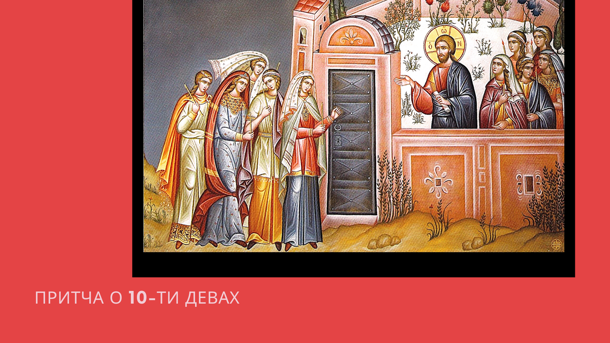В двадцать пятой главе Иисус сначала рассказывает притчу о женихе и 10 невестах, пять из которых запаслись маслом для лампад, в ожидании его, а другие - нет. Потому когда он пришел, то впустил первых на брачный пир, а вторые ушли покупать масло и опоздали.