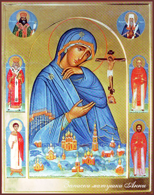 Сильвестр, Иоанн, Михаил и Александр- новомученики, а внизу женский Ачаирский монастырь в честь Креста Господня, который называют "Жемчужиной Сибири".