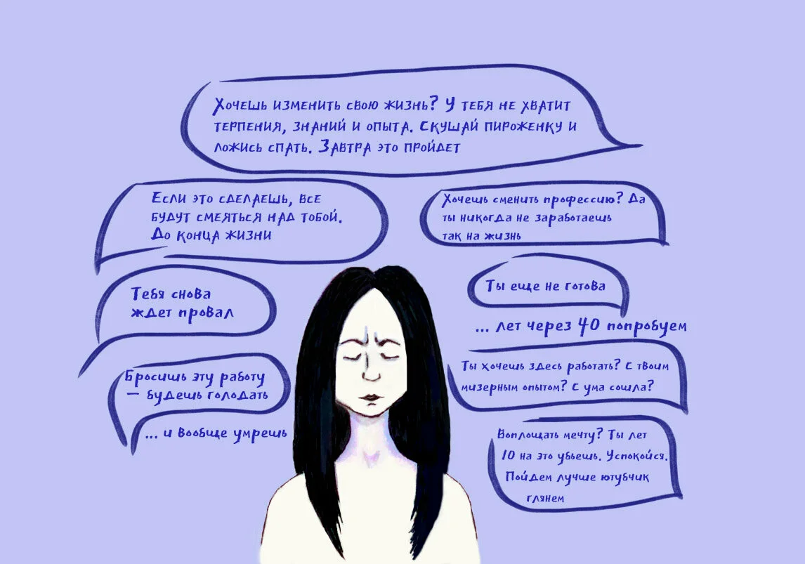 У каждого из нас внутренний критик, но не у всех он злобный и унижающий. Чтобы не произошло, вы всегда будете виноваты, вы всегда будете хуже по сравнению с другими людьми. Ваши стандарты завышены и если вы им не соответствуете (а вы зачастую всегда им не соответствуете), критик наказывает вас за любую, даже самую мелкую ошибку. Все ваши провалы, промахи, неудачи критик запоминает, но никогда не обращает на ваши сильные стороны, успехи и достижения. Также у вас есть определенный сценарий, свод правил, по которым нужно жить и если вы выбиваетесь из рамок, критик обрушивается на вас со словами о вашей аморальности, мерзости, отвратительности, плохости. Вы должны быть лучшим, но к сожалению, вы не можете дотянуть до этого, что делает вас полным ничтожеством. Ваш внутренний критик каждый день уничтожает ваше чувство собственного достоинства. Коварство заключается в том, что его голос настолько сросся с вашим и вплетен в ваши мысли, что вы не можете отделить его от себя, заметить его негати