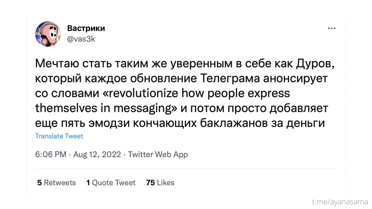 Дайджест новостей индустрии Для ребят, которые только пришли в канал: я каждый понедельник выбираю по пять новостей прошлой недели и делаю дайджест. Это чтоб освежить память или узнать о том, что интересного произошло в индустрии. ▫️Дуров говорил, что нас ждёт революционное обновление «Телеграма», которое изменит наше взаимодействие в мессенджерах и соцсетях. В итоге вышло обновление, где главное нововведение — анимированные смайлики. В интернетах уже ржут. ▫️Антон Пинский, который выкупил вместе с Тимати кофейни «Старбакс» в России, подал в Роспатент три заявки на регистрацию возможных названий сети и логотипов. Вот предположительные названия: Stars Pinskiy Coffee, Stars Kanokov Coffee и Stars Coffee. Логотипы почти полностью копируют фирстиль «Старбакса». ▫️Александр Овечкин занял первое место среди спортивных инфлюенсеров России. По сравнению с весной 2022 года Александр поднялся на 11 строчек. Чаще всего его можно увидеть в сотрудничестве с букмейкерской конторой «Фонбет». ▫️Генди