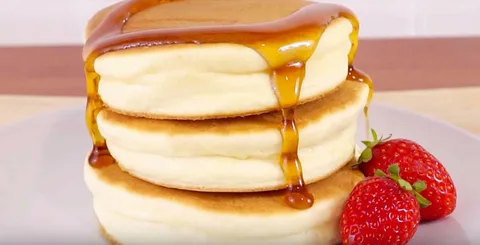Необычный вариант панкейков из привычных продуктов - пышные оладушки-панкейки без сливочного масла. Изюминка блюда в добавлении взбитых белков, благодаря чему тесто получается воздушным, а готовые панкейки - мягкими и нежными, словно суфле. Попробуйте! Продукты: яйца - 2 шт., мука пшеничная - 40 г, молоко - 25 г, сахар - 40 г, разрыхлитель - 1/2 ч.л., сок лимона - 1 ч.л., масло растительное (для жарки) - 1 ч.л. Для подачи мёд - по желанию. Приятного аппетита!
