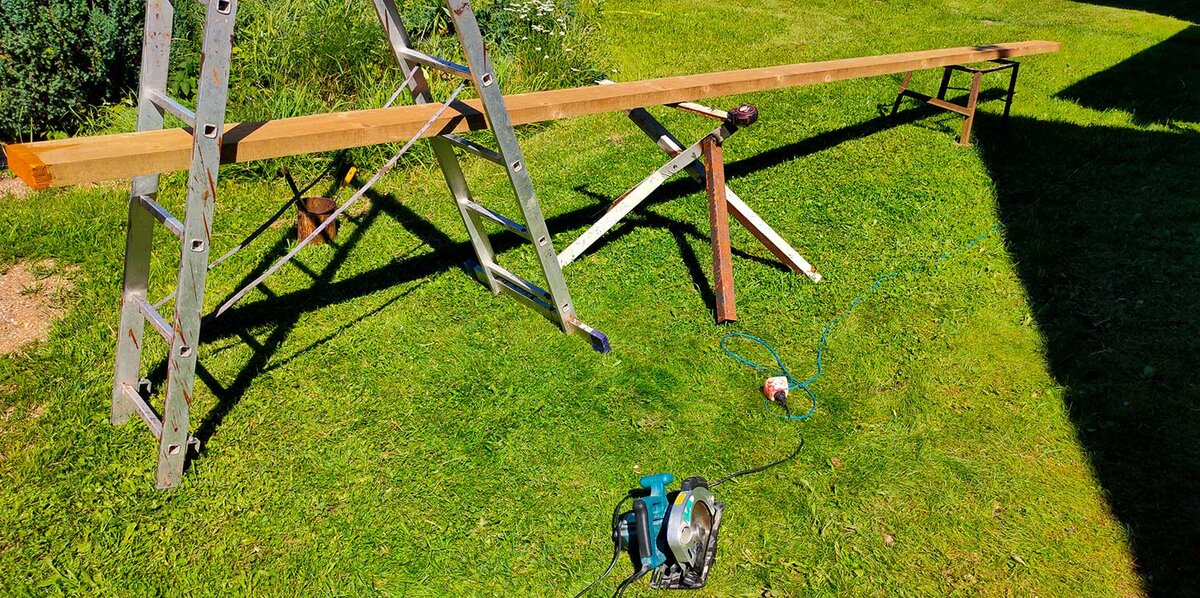 Удобно использовать лестницу при распиловке шестиметровой древесины — чтобы отрезанный конец (поручик снова молчать!) не падал на землю и не расщеплялся на изломе, можно подставить под пиломатериал лестницу и спокойно, и беззаботно пилить, хоть целый день, на радость отдыхающим за забором соседям.