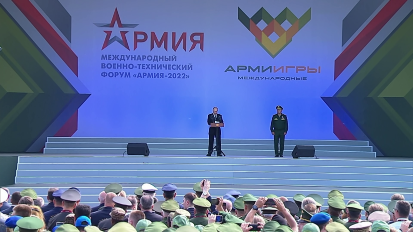 Президент России Владимир Путин заявил, что долгом России перед памятью миллионов жертв Второй мировой войны является противодействие распространению любых форм неонацизма, русофобии и расизма. Об этом он сказал на открытии Международного военно-технического форума «Армия-2022». По словам главы государства, уроки страшной трагедии, к которой человечество привёл нацизм в XX веке, не должны быть забыты. «Наш долг перед памятью миллионов жертв Второй мировой войны — жестко реагировать на попытки фальсификации истории, противодействовать распространению любых форм неонацизма, русофобии и расизма», — заявил Путин. Он отметил большое общественно-политическое значение проведения в рамках форума международного антифашистского конгресса. Также Путин заявил, что военные России и Донбасса с честью выполняют свой долг в ходе спецоперации и чётко выполняют все поставленные задачи. RT вёл трансляцию выступления главы государства.