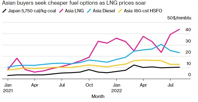 Азиатские покупатели ищут более дешевые варианты топлива, поскольку цены на СПГ растут