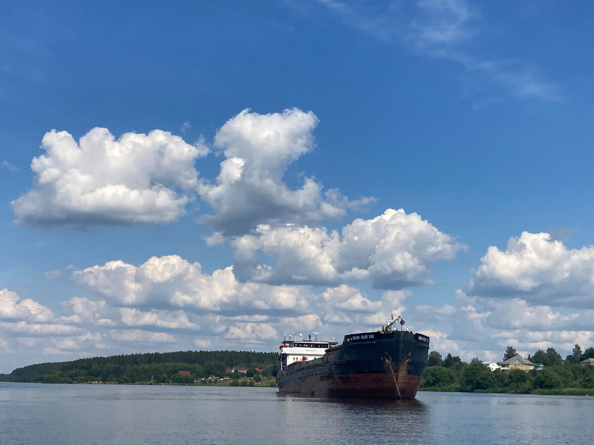 Весьма распространенный в недавнее время сухогруз проекта 781 ("река-море")"Волго-Балт", изготовленный на заводе "Красное Сормово " бросил якорь и стал н рейд на подходе к Дубне, находясь в каких- то шестистах метрах от границы Московской области. Куда он пойдет и что повезет пока непонятно, теплоход то не загружен, а команды, которая согласно судовой роли составляет до 15 человек на борту замечено не было