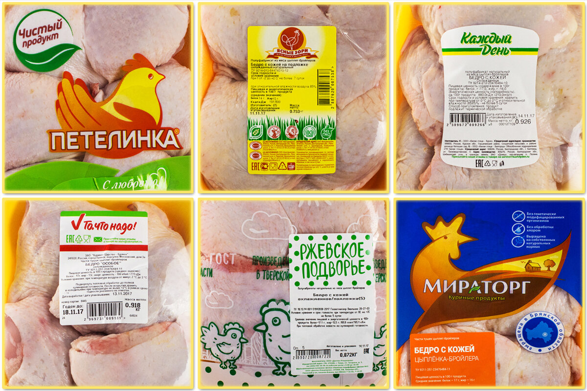- В 2017 году были проверены окорочка цыплят-бройлеров ТМ «Петелинка»- товар без нарушений, а также окорочка цыплят-бройлеров ТМ «Куриное царство» производства ЗАО «Петелинская птицефабрика» — товар с замечаниями (не соответствует заявленному наименованию — окорочок, по факту это задняя четвертина).