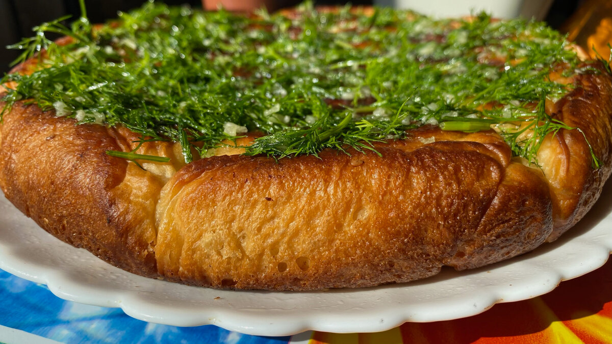 Домашний белый хлеб без духовки, без яиц, с ароматом чеснока и зелени. Аромат на всю квартиру.