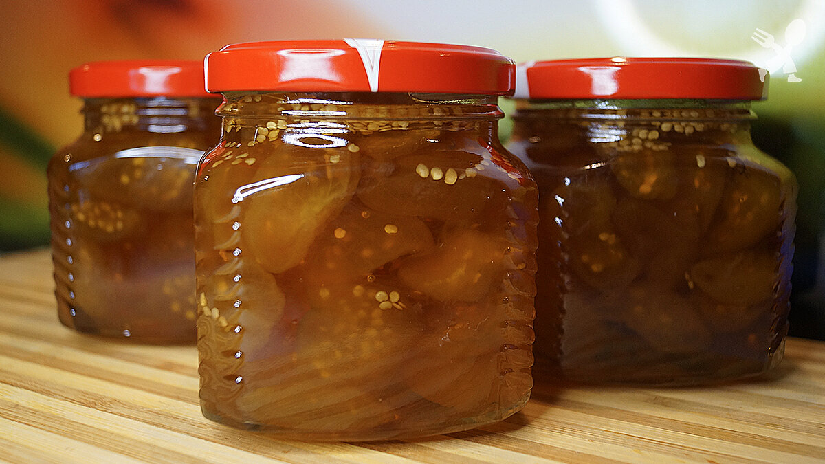 В прошлом году в гостях я попробовала очень интересное варенье. Его вкус был не похож ни на что иное, и, как оказалось позже, основным ингредиентом был физалис. Конечно же, мне захотелось повторить эту сладкую заготовку на зиму, но для этого пришлось предварительно посадить на огороде физалис 😄 А что у меня в итоге получилось и рецепт того самого варенья из физалиса, читайте в этой статье 🧡 Ингредиенты: Приготовление: Берем 1 кг физалиса. Очищаем его от «коробочек». Заливаем кипятком на 15 минут, затем хорошо промываем. Режем на несколько частей в зависимости от размера плодов. Засыпаем 1 кг сахара. Оставляем на 12 часов. Ставим на плиту, доводим до кипения и кипятим 15 минут. Снова оставляем на 12 часов. После чего ставим на плиту, доводим до кипения и кипятим 15 минут. Еще раз оставляем на 12 часов. Затем добавляем цедру одного лимона и 3 веточки мяты. Доводим до кипения, кипятим 20-30 минут. Убираем мяту и раскладываем варенье по предварительно простерилизованным баночкам. С указа