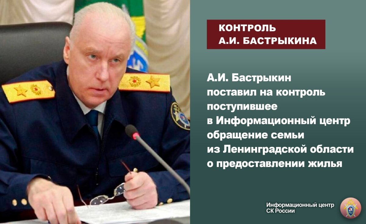А.И. Бастрыкин поставил на контроль поступившее в Информационный центр обращение семьи из Ленинградской области о предоставлении жилья